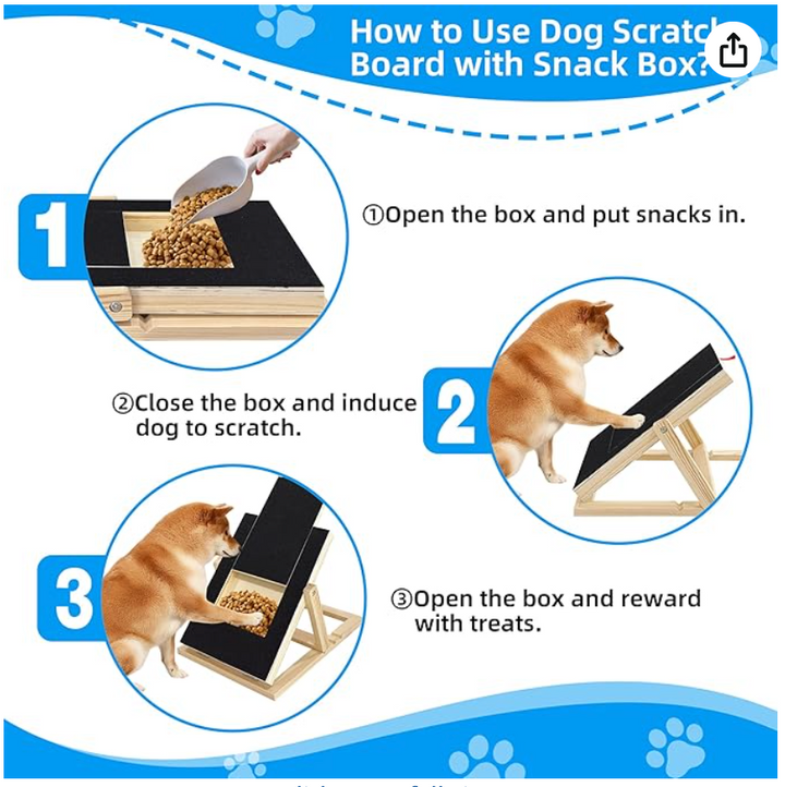 • BUILT-IN TREAT BOX FOR POSITIVE TRAINING: Simple, reward-based training system—open the box, add treats, close it, and encourage scratching. Open again to reward success, making nail care stress-free and fun.