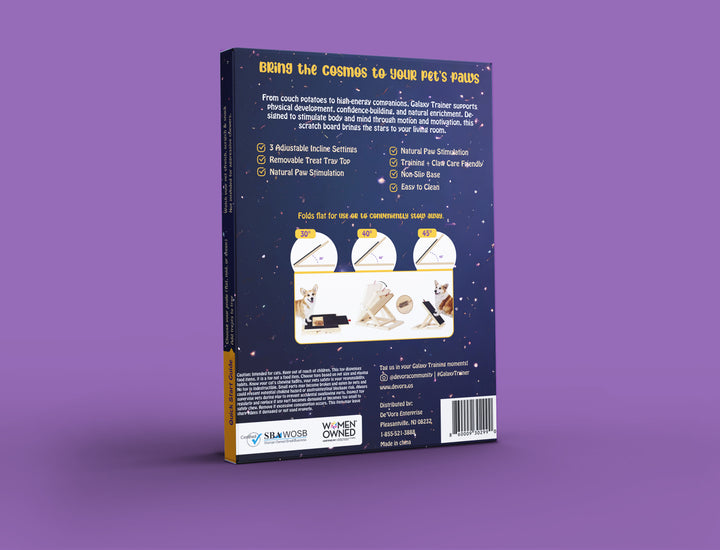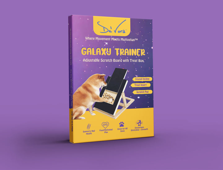 De’Vora Adjustable Dog Scratch Board with Treat Box – Galaxy Trainer Ramp for Dog Nail Care, 3 Incline Levels (Flat, 30°, 40°, 45°)